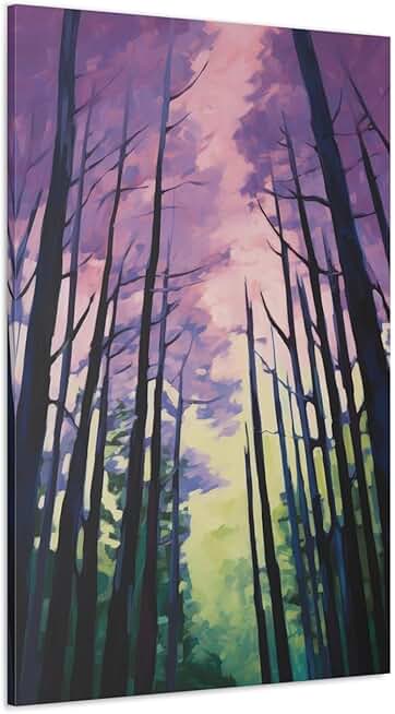 Abstract Forest Painting Canvas Print | Pine Forest Artwork | Pink & Green Wall Art Room Decor | Contemporary Home Decor (32" x 48")