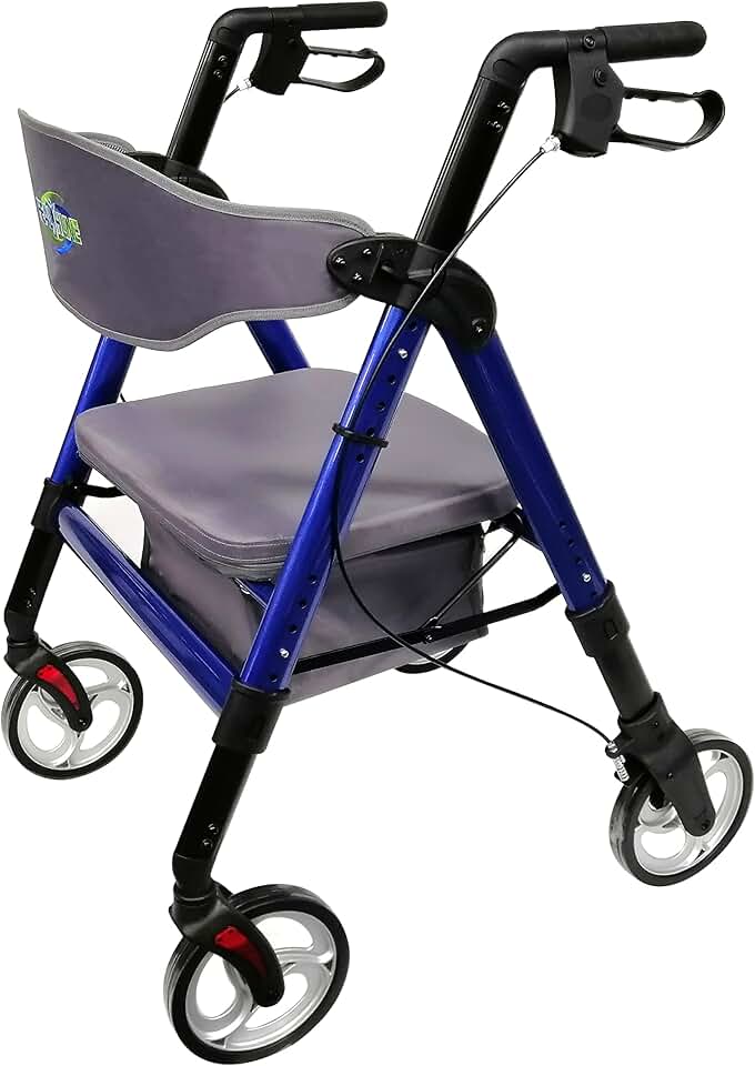 Heavy Duty Rollator Walker with Seat - Extra Wide Alluminium Folding Rolling Walkers 450LB with Wide Basket & Padded Seat - 4 Wheel Walker for Adults (Blue)