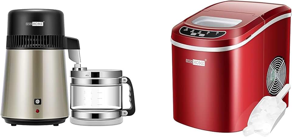 VIVOHOME Water Distiller Countertop 1.1 Gallon/4L 304 Stainless Steel Distilled Water Machine with VIVOHOME Electric Portable Compact Countertop Automatic Ice Cube Maker Machine