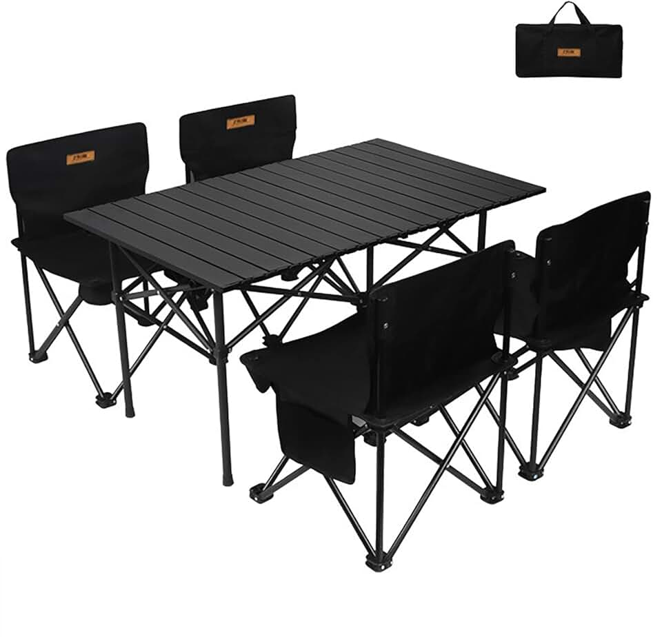 Camping Folding Table and Chairs, Aluminum Alloy Egg Roll Table with Easy Carrying Bag for Indoor, Outdoor, Camping, Picnic,Backyard, Black.