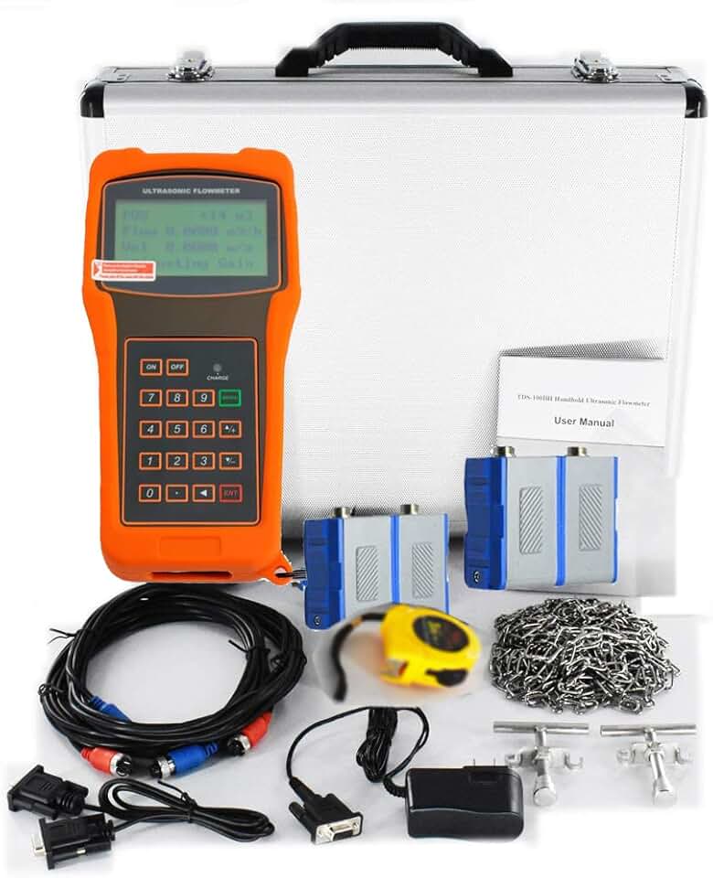 Portable Digital Ultrasonic Flow Meter Flowmeter with S2 and M1 Transducers for Pipes from 0.59 to 27.56 inch DN25 to DN700 mm and from -30°C to 90°C