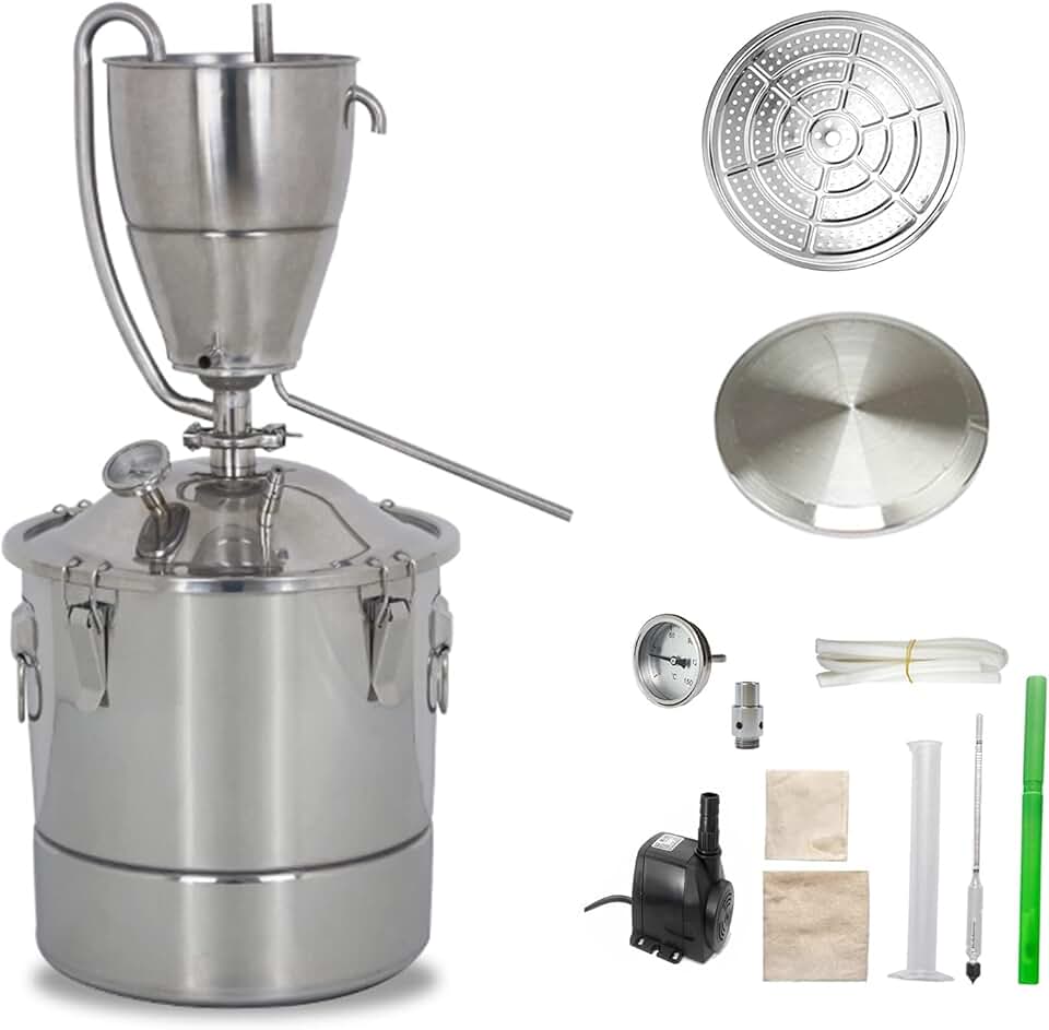 YUEWO Still 20L 5.28 Gal Essential Oil Alcohol Distiller 304 Stainless Steel Distillation Kit Wine Making Kit Home Distiller with Thermometer for Liquor/Whiskey/Brandy