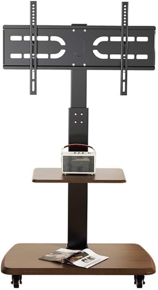 Universal TV Stand TV Stand for Bedroom Mobile TV Stand for 32-80 Inch TVs, Height Adjustable TV Cart with Media Shelf Wood Base and Wheels, Holds Up to 132lbs Universal Television Stands