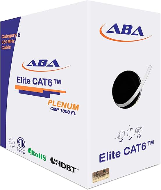 CAT6 Plenum (CMP), Ethernet Cable 1000ft, Unshielded Twisted Pair (UTP) 23AWG, Solid Pure Bare Copper, 550MHz, UL Certified, Easy to Pull (Reelex II) Box, Bulk Networking Cable - White