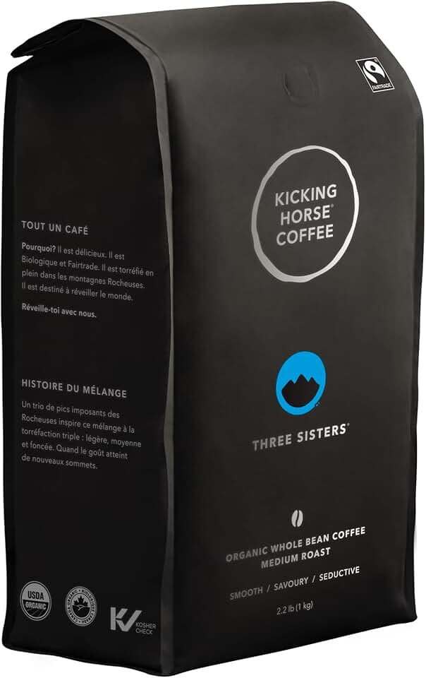 Kicking Horse Coffee Three Sisters, Medium Roast, Whole Bean, Certified Organic, Fairtrade, Kosher, Black, 35.2 Oz, Pack of 6