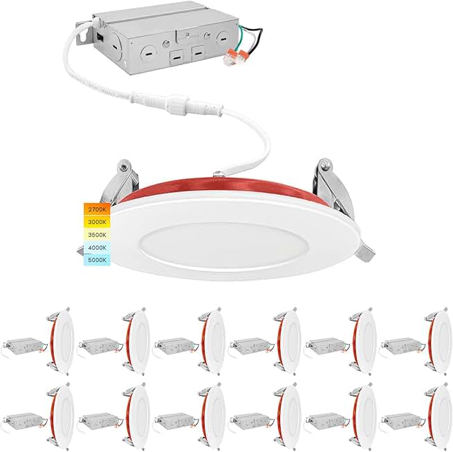 LUXRITE 12-Pack 3 Inch Ultra Thin LED Fire Rated Recessed Lights, 5CCT 2700K/3000K/3500K/4000K/5000K, 2 Hour Fire Rating, 500 Lumens, Dimmable Wafer Lights, IC Rated, Wet Rated, ETL, No Tenmat Needed