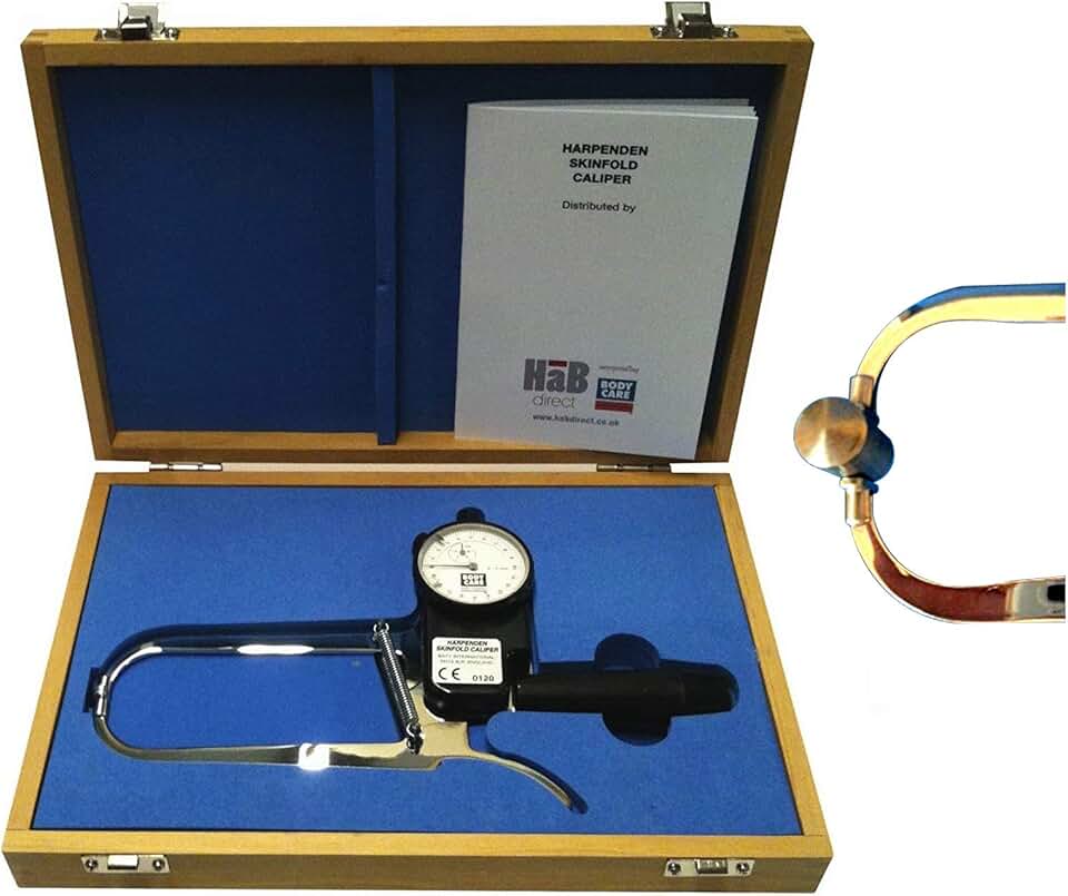 Skinfold Caliper with Calibration Dowel, Wood Case, and Instruction Manual with Charts to Measure and Calculate Body Fat Percentage - 0.2 mm Accuracy, Scientific