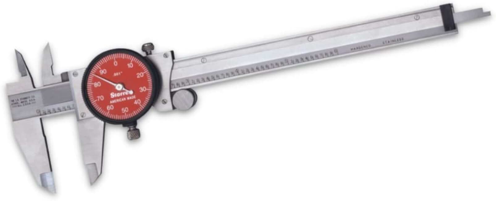 Starrett 120 Series Stainless Steel Dial Caliper with Lock Screw and Fitted Plastic Case - Red Face, 0-6" Range, .001" Graduations, +/-.001" Accuracy - R120A-6