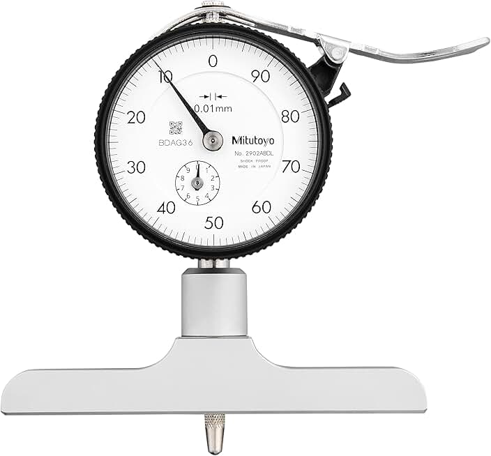 Mitutoyo 7212A Dial Depth Guage, Indicator Type, 100-200mm, 0.01mm Graduation, +/- 0.015mm Accuracy, b10mm Stroke, 101.6mmx16mm Base