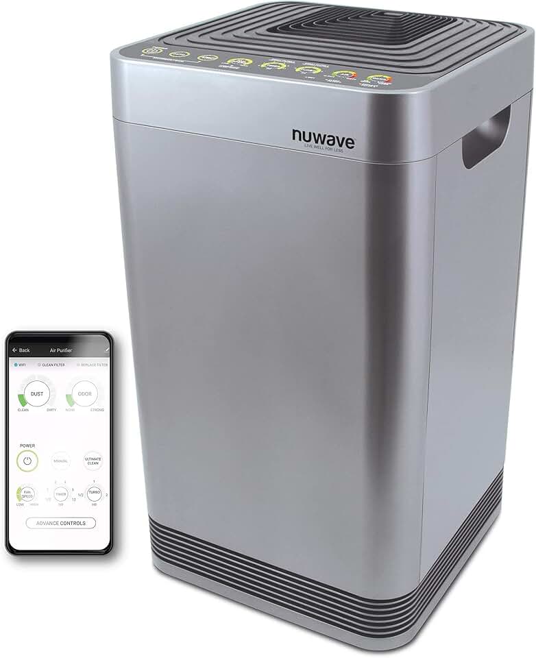 Nuwave Air Purifiers for Home Large Room Up to 2934 Sq. Ft, Auto Mode Air Quality & Odor Monitors, 5-Stage Filtration with 8 Additional HEPA/Carbon Combo Filters, Remove Dust Smoke Pollutants Odor