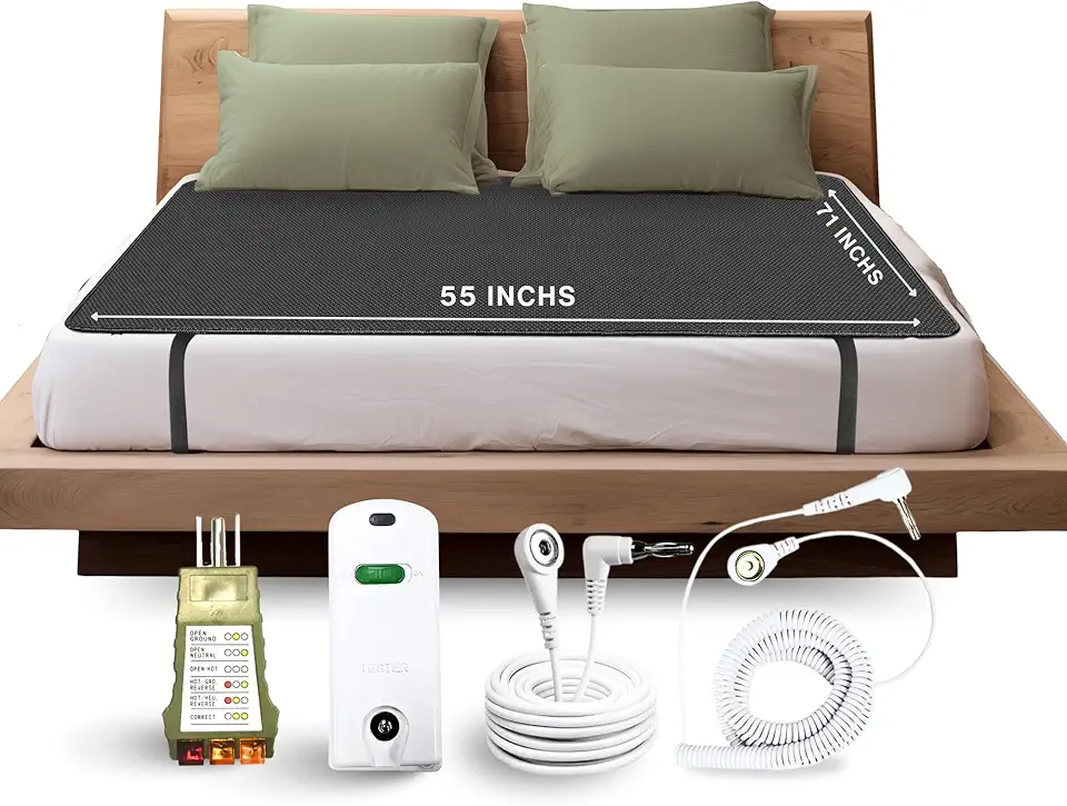 ELECTRAWAVE Grounding Mattress Cover Pad, Queen Size Earth Connected Conductive Carbon Leatherette Grounding Sheets for Better Sleep, Relieve Pain, Reduce Inflamation