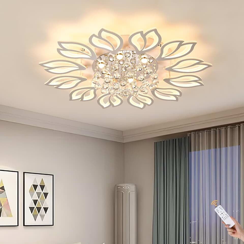 Garwarm Modern Ceiling Light,40.7 in Dining Room Light Fixture,12 Petals Flower Flush Mount Ceiling Lights Chandelier,Bedroom Living Room Kitchen Office Lighting Fixture,100W,White