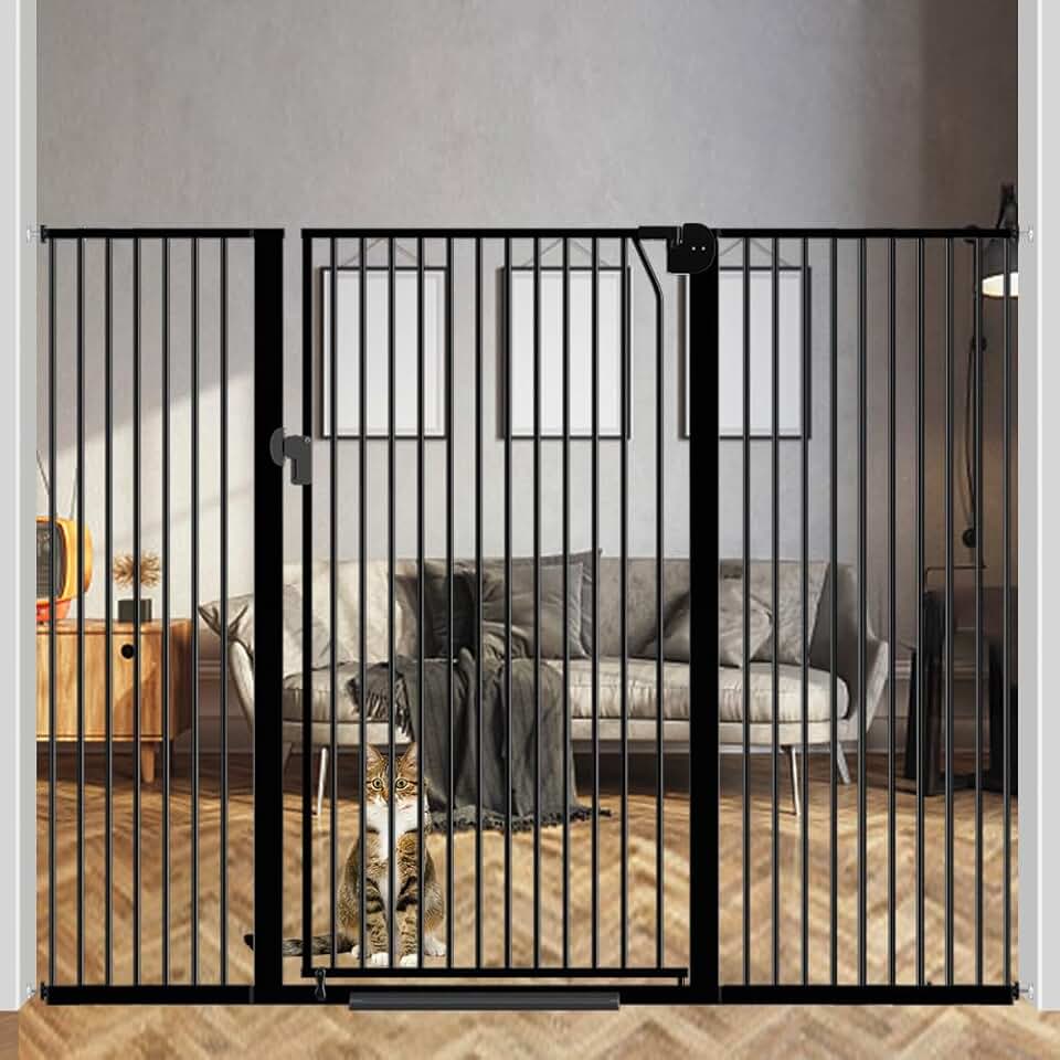 59" Extra Tall Cat Gate for Doorway, 54.7"-58.7" Wide Pressure Mounted High Pet Dog Gate, Auto Close Safety Gate for Indoor Stairs,Doorways, Kitchen