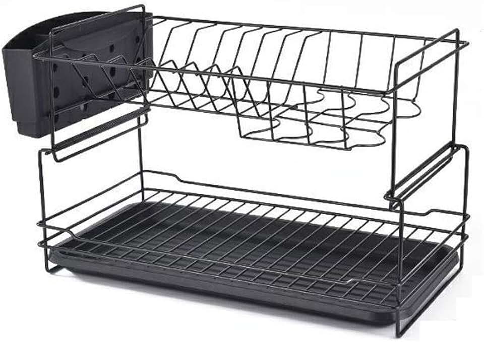 Black Bowl Rack - Metal Double-Layer Bowl Drying Rack, Kitchen Drain Basket, Kitchen Drying Board