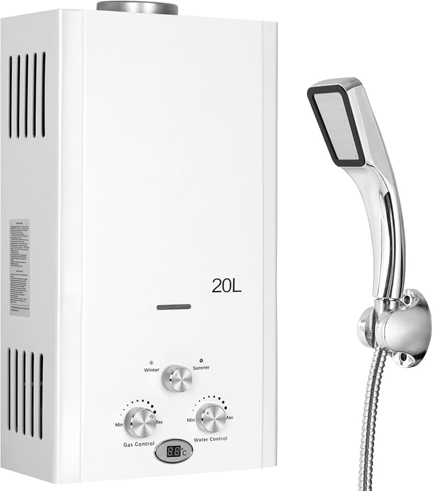 Xverycan Tankless Water Heater 5.28GPM 20L Propane Gas Water Heater, 40KW Outdoors Portable Instant Water Heater with Shower Head, LED Display, Overheating Protection, for Home RV Camping Trips