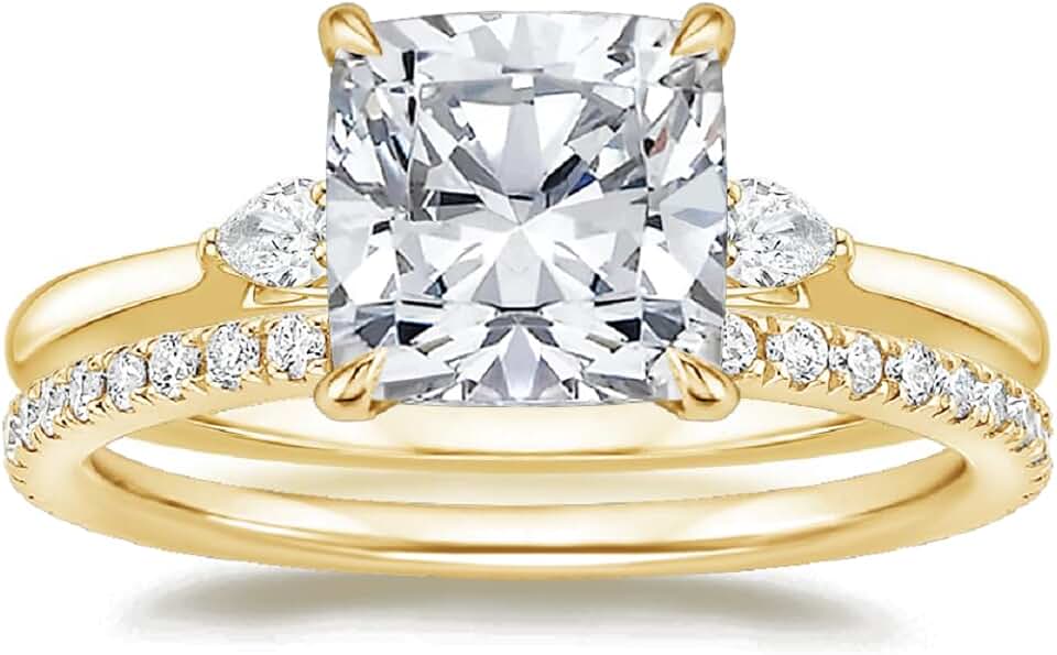 Generic 3 Carat Cushion Cut Moissanite Twisted Bridal Sets, Engagement Ring Set, Yellow Gold, Sterling Silver, 10k/14k/18k Gold Options, Customizable
