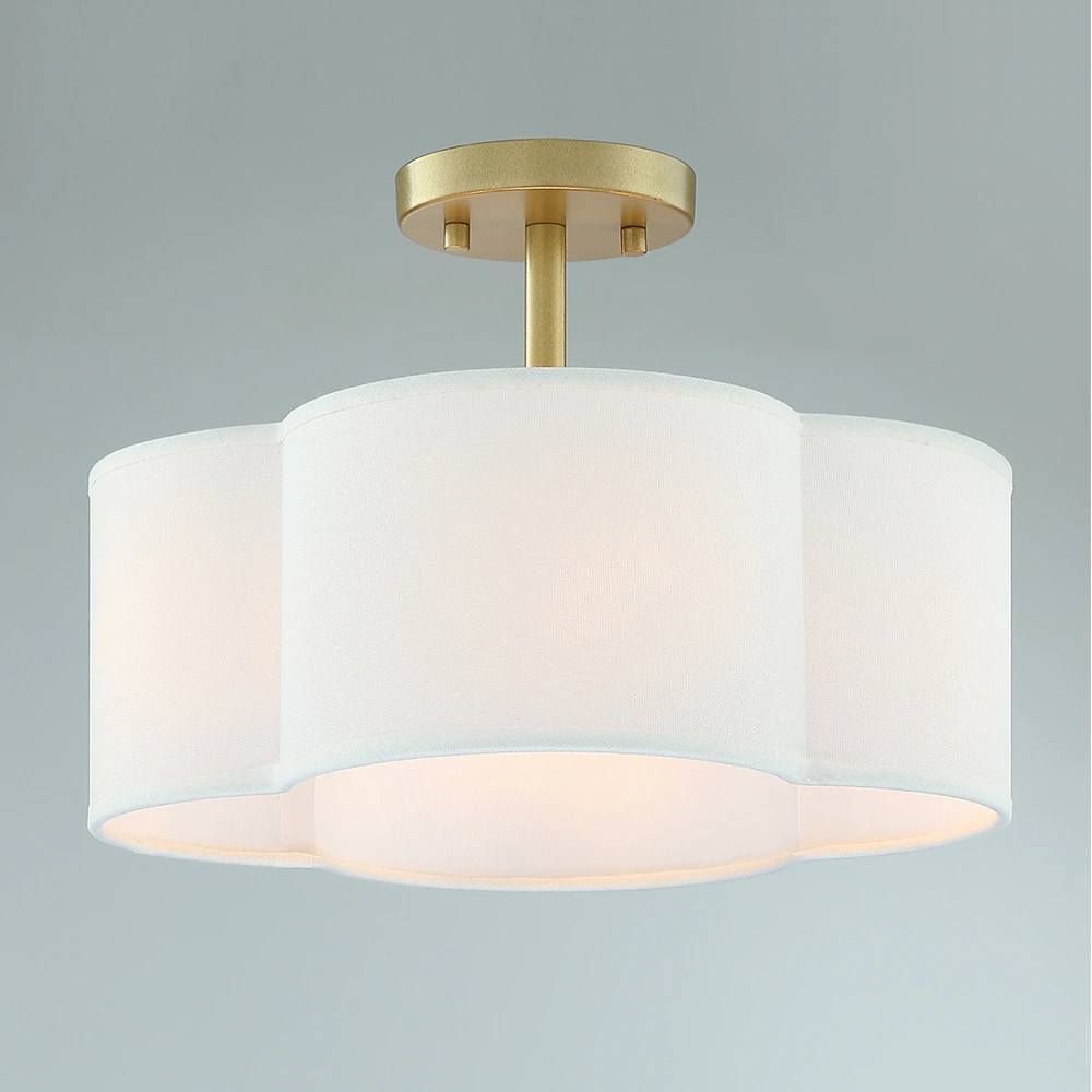 Martina 4-Light 14in Semi-Flush Mount Light with White Scallop Fabric Shade