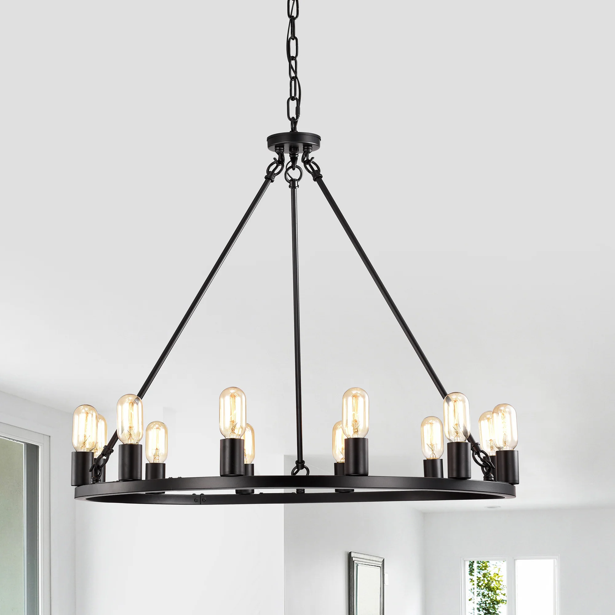 Liam 12-Light 35 Inch Round Wagon Wheel Chandelier