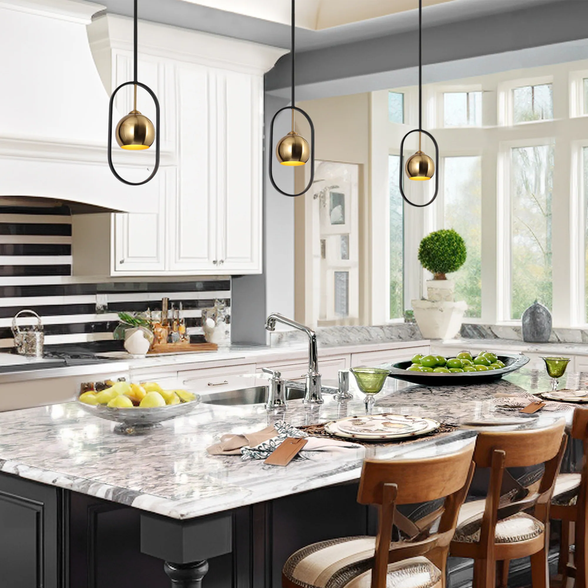 Modern Black Gold 1-Light Metal Pendant Lights Farmhouse Kitchen Island Light for Dining Room