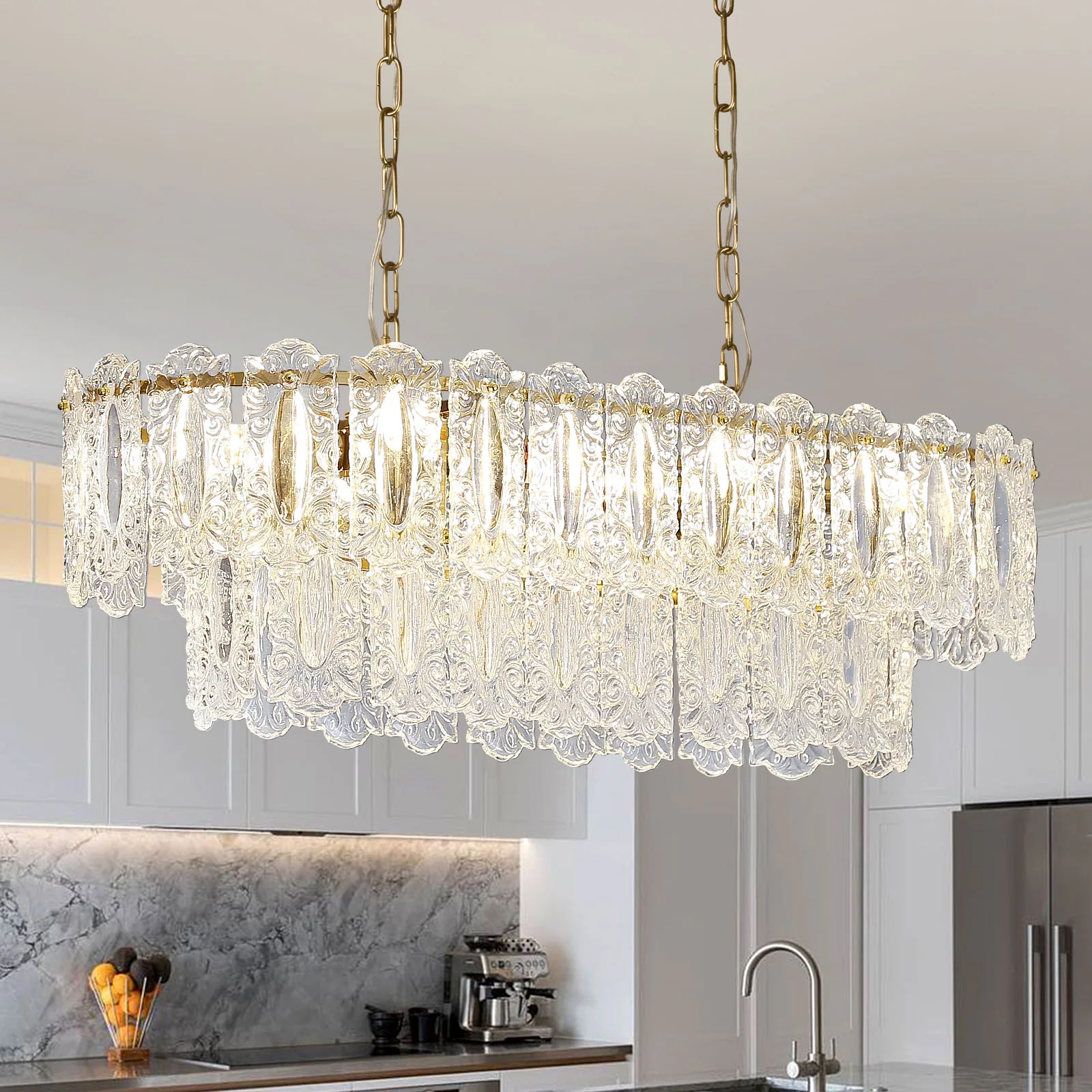 31in. Modern Gold Crystal Chandelier, Crystal Pendant Light with 2-tier Crystal Shades, Bulbs Included