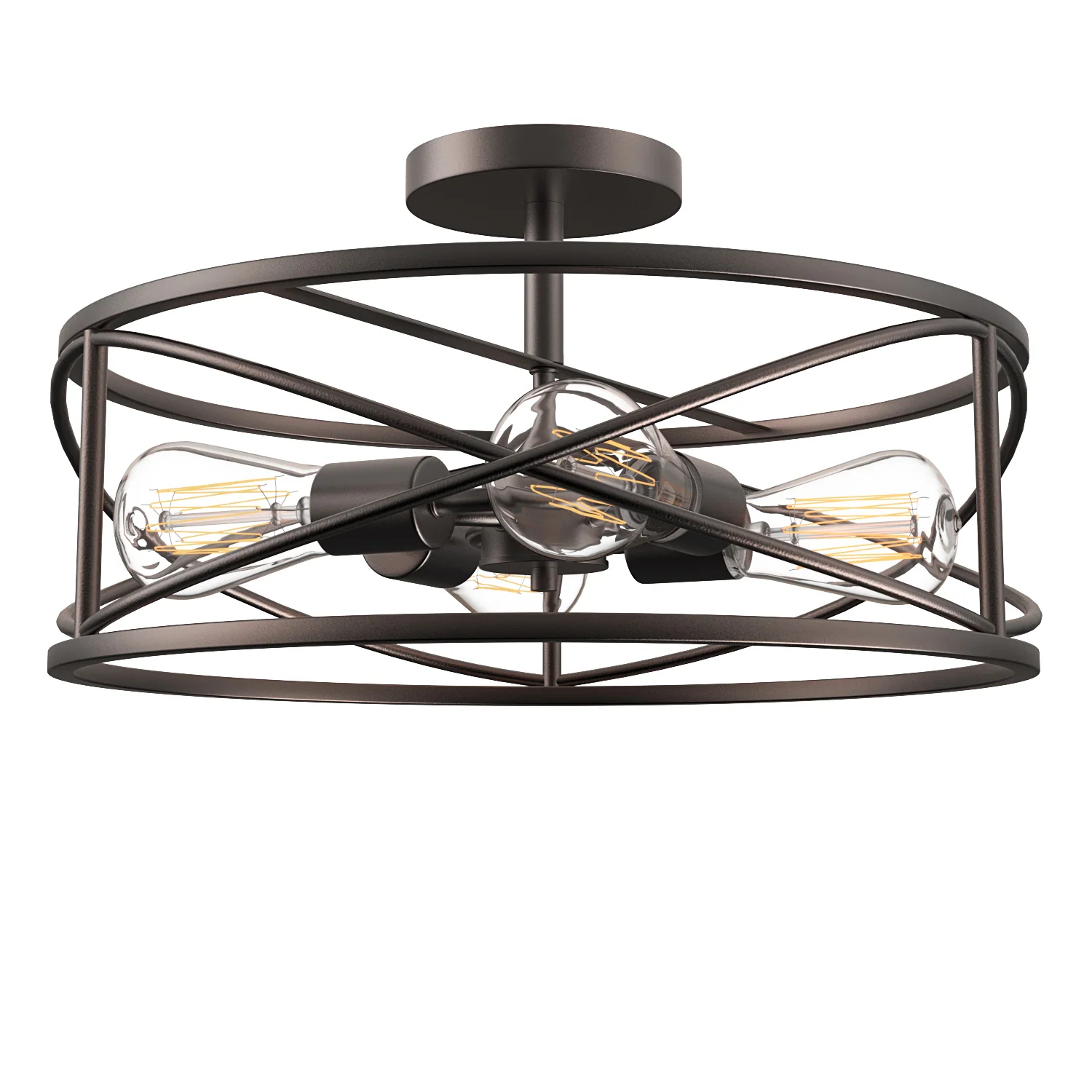 Cedar Hill 4-Light 17" Caged Drum Semi Flush Mount