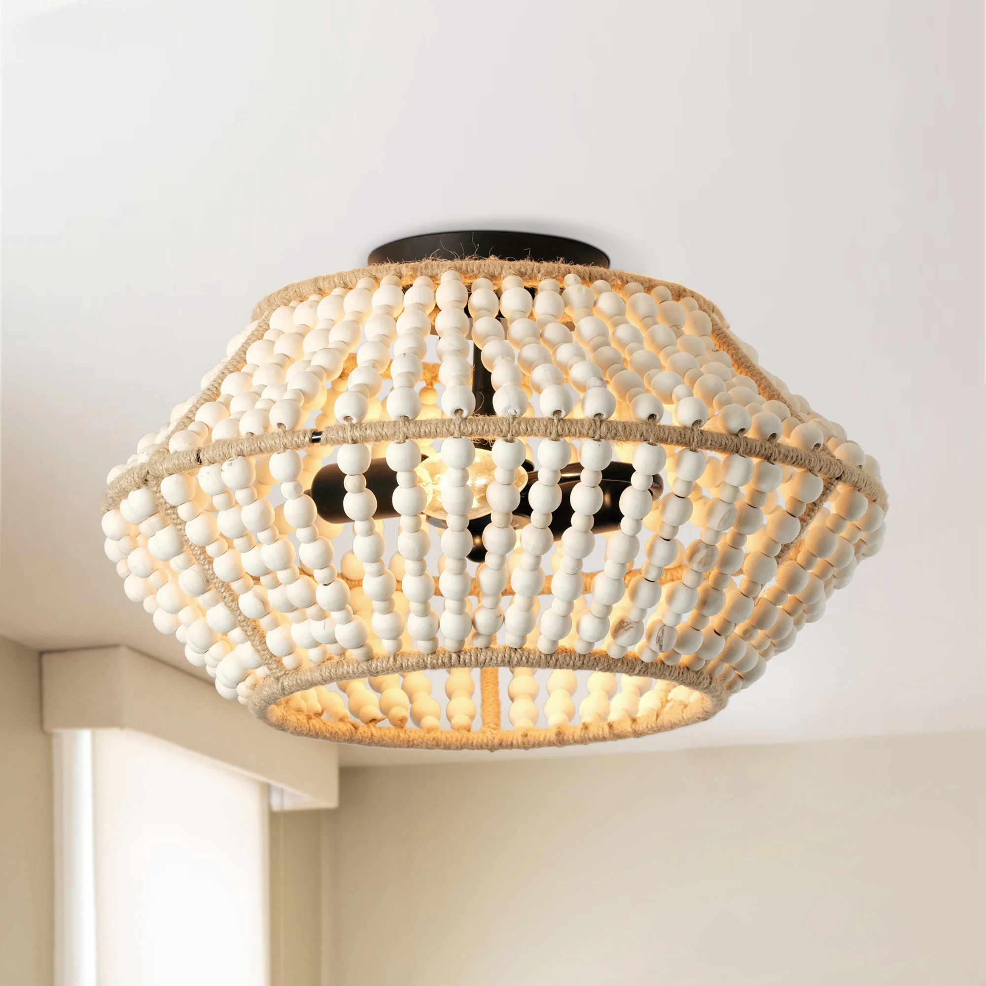 Bohemia 2-Light Wood Beaded Flush Mount Ceiling Light for Hallway