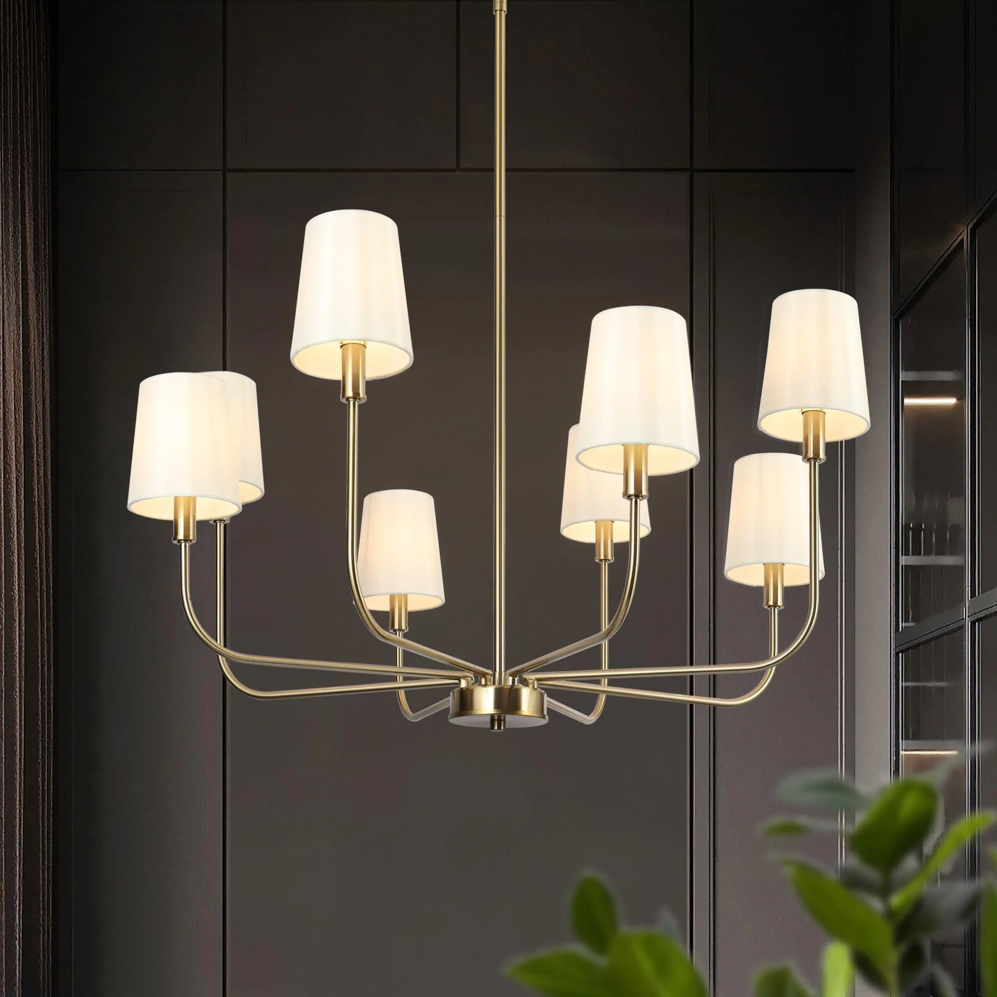 Modern Glam 8-Light Gold Chandelier French Metal Pendant Light with Fabric Shades