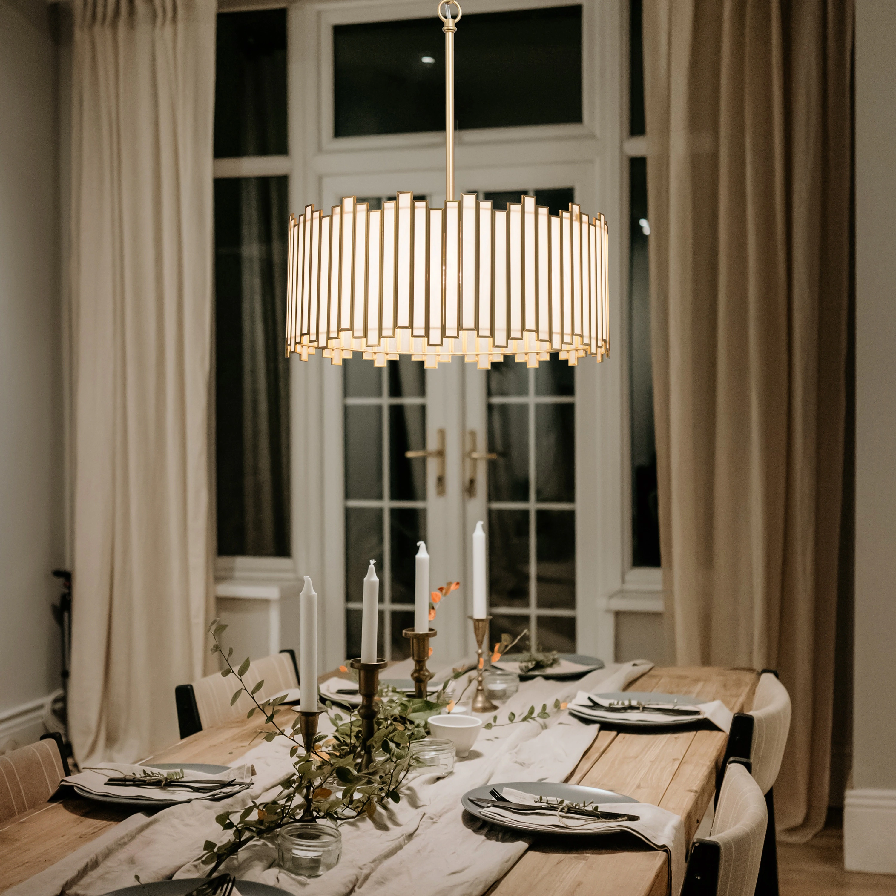 Tifany Modern Gold 4-Light Drum Chandelier Colored Glass Lights for Dining Room