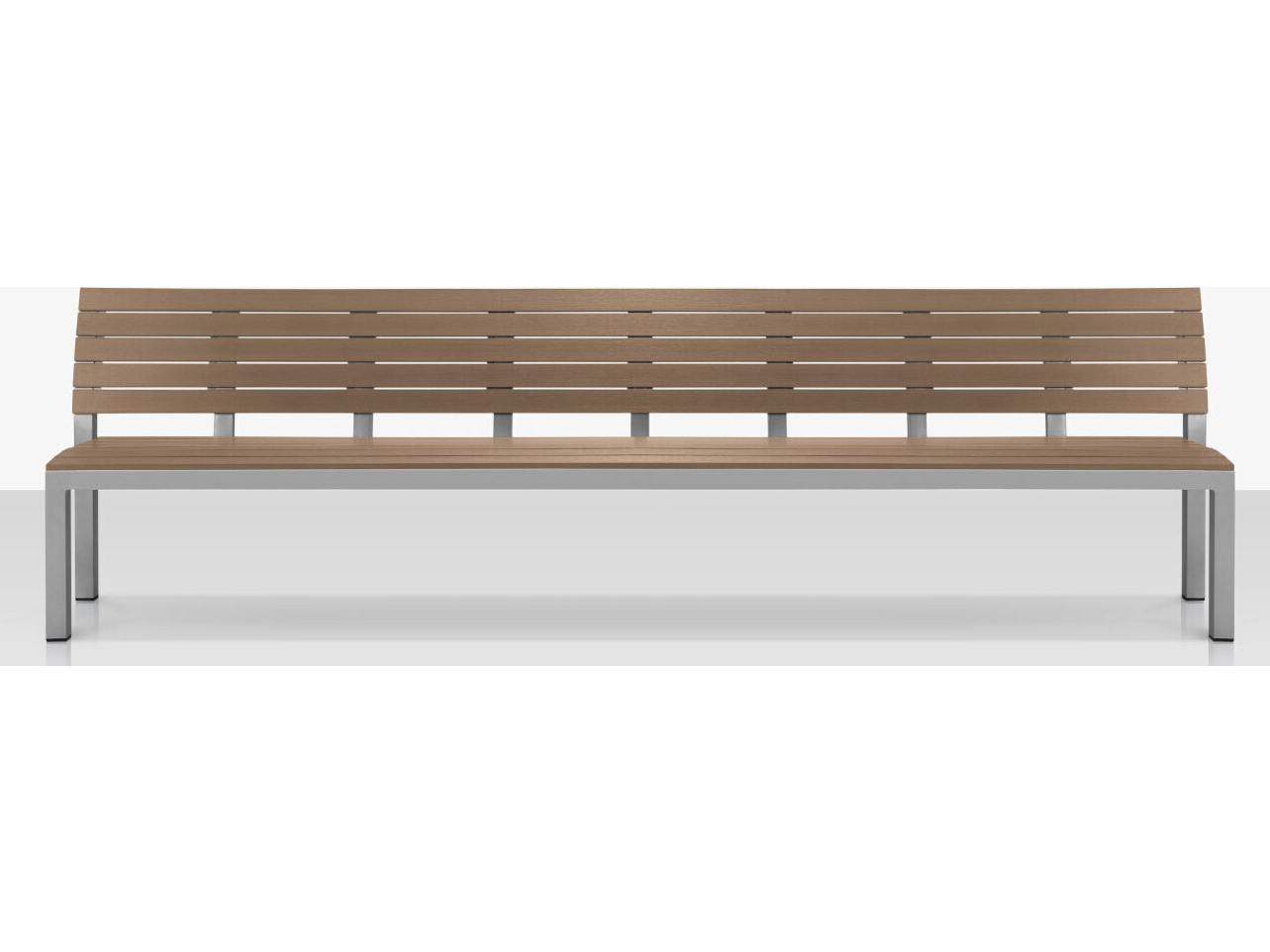 Closeout Vienna Aluminum DuraWood Slats Stackable 10' Highback Bench in Teak