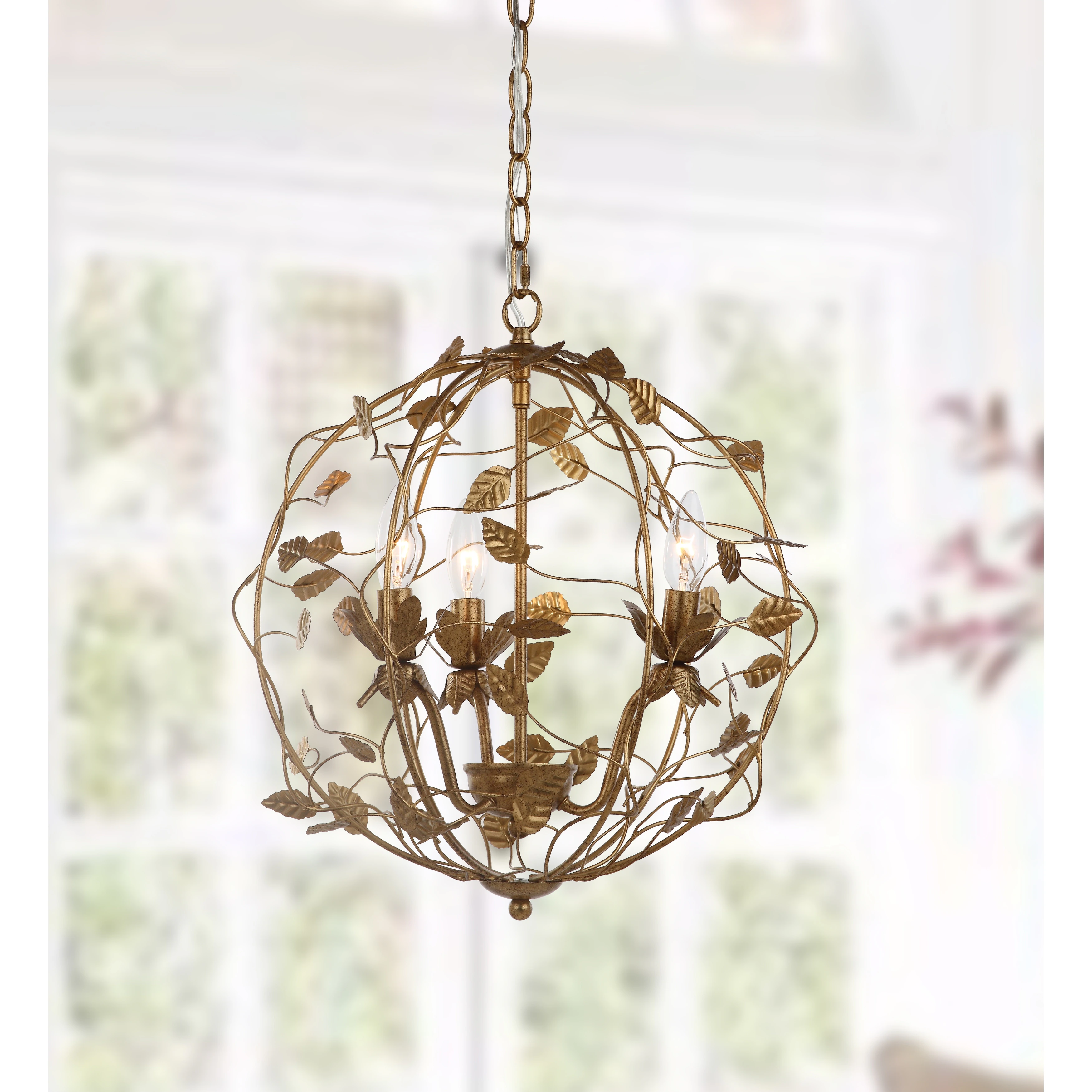 SAFAVIEH Lighting Austen 3-light LED Gold Leaf Cage Adjustable Chandelier