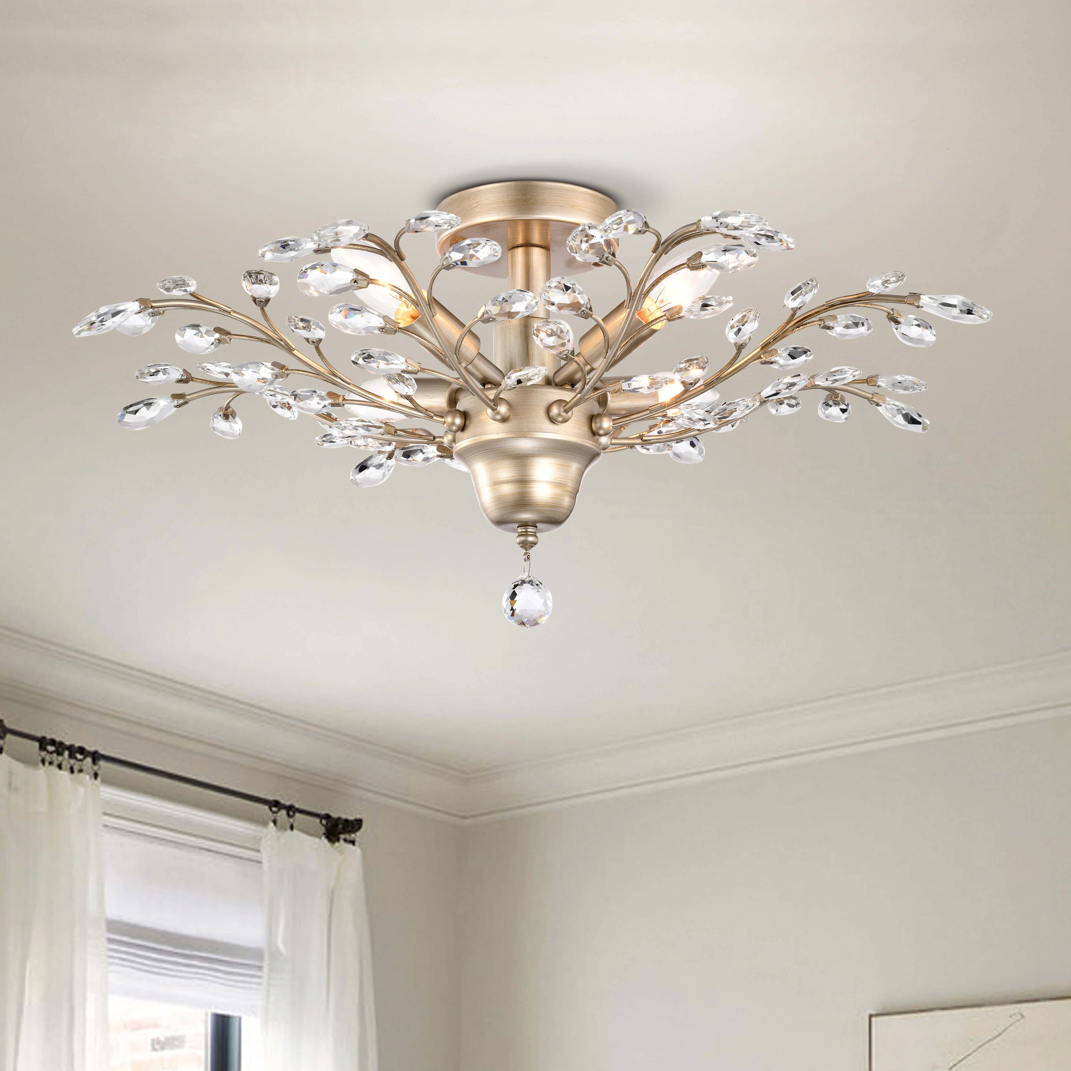Holly 4-light Brushed Champagne Silver Crystal Leaves Flush Mount