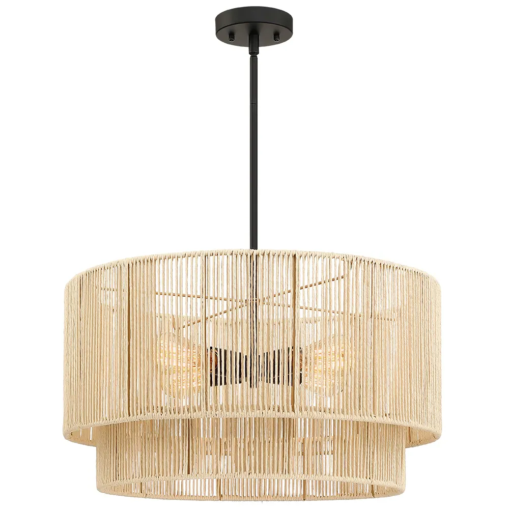 4-Light Rattan Tiered Drum Chandelier Light with Black Canopy