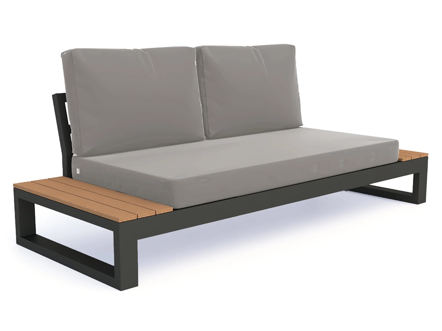 Soho Closeout White Aluminum Loveseat in Steel Fabric w/ Teak Side Tables