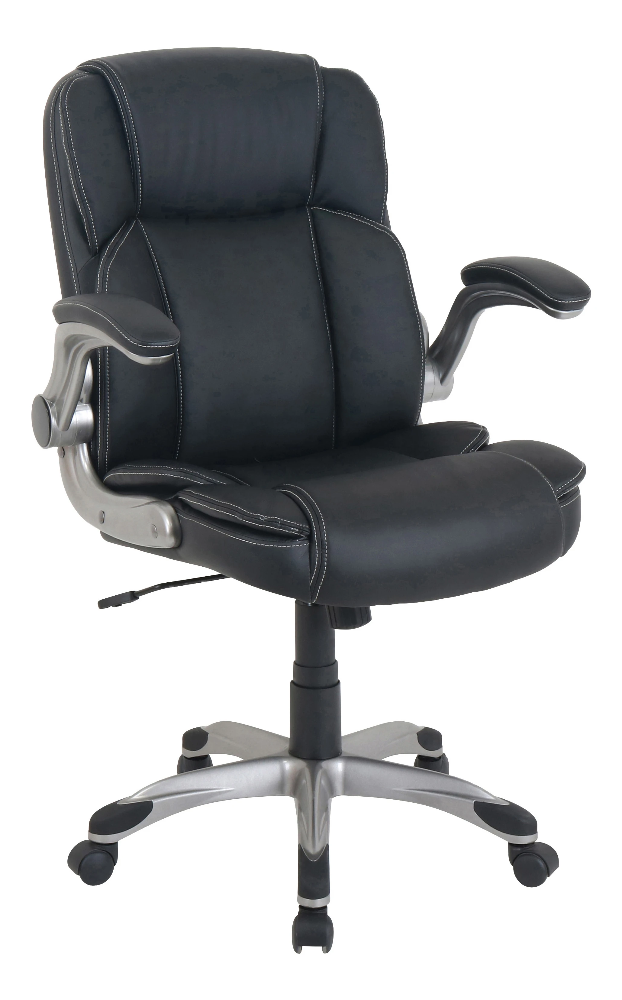 LYS SOHO Flip Armrest Mid-Back Leather Chair, Black/Silver