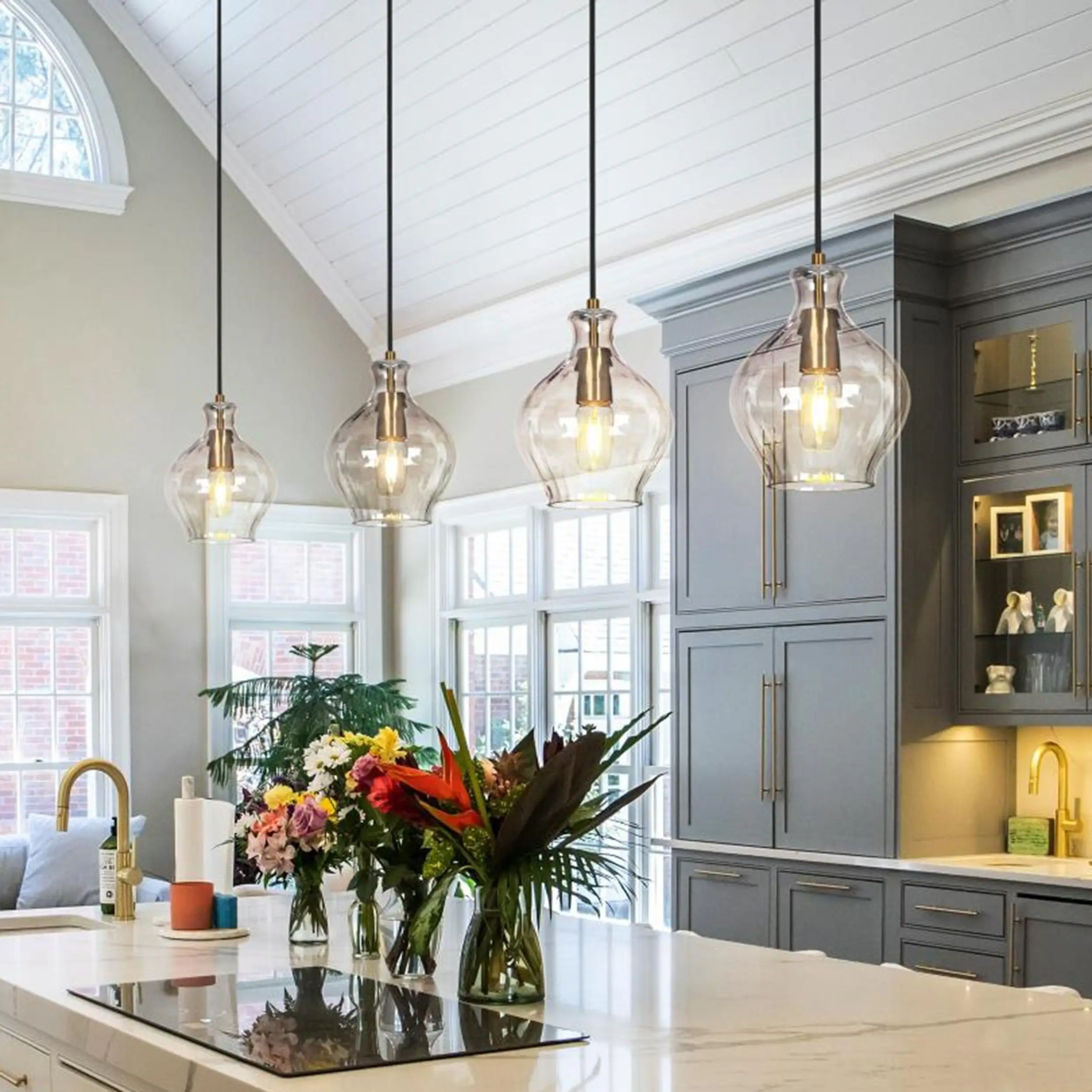 Coria Modern Glam Mini Pendant Light 1-Light Chic Dimmable Kitchen Island Lamp Fluted Glass Dining Room