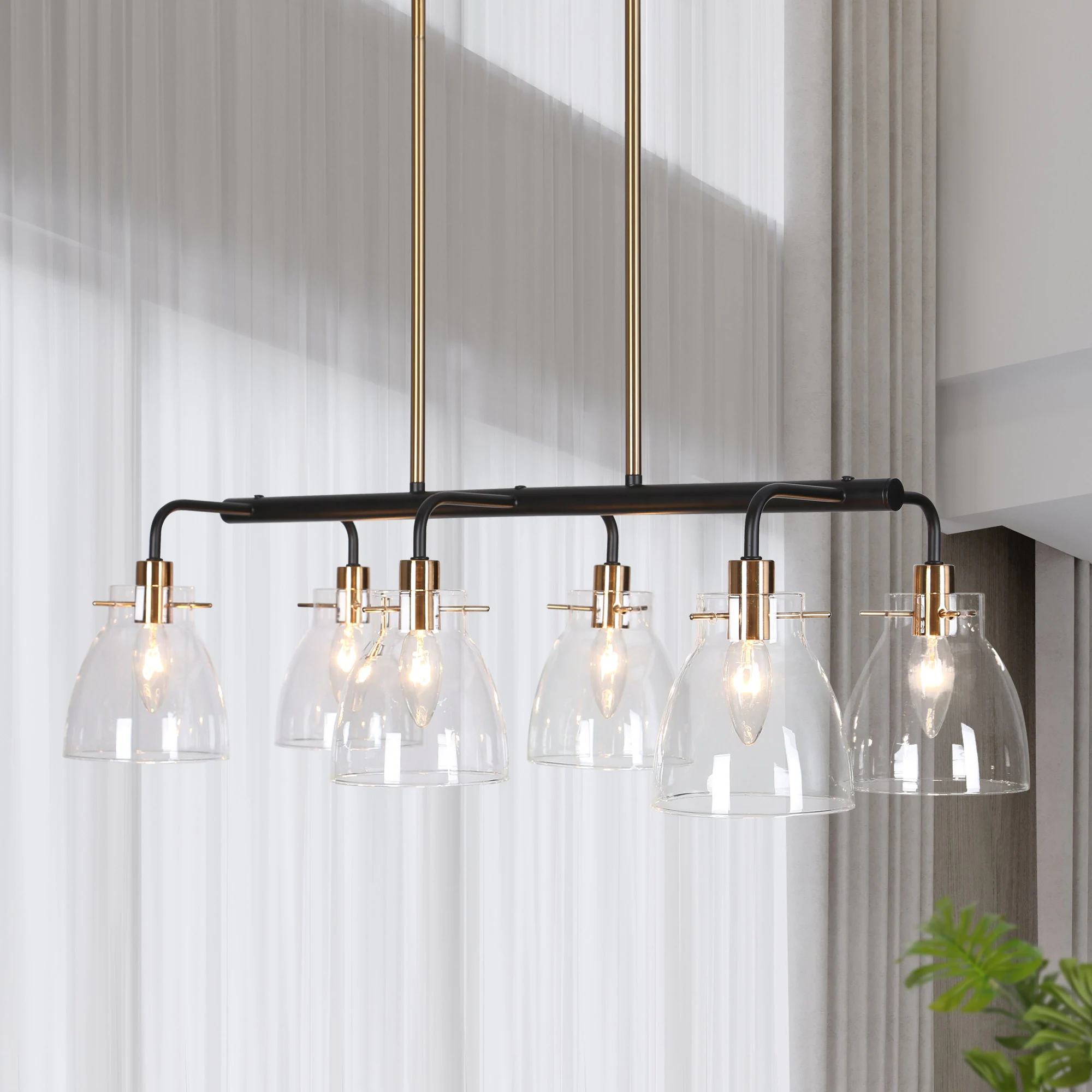 Carrall Modern 6-Light Black Gold Linear Chandelier Glass Pendant Light for Dining Room