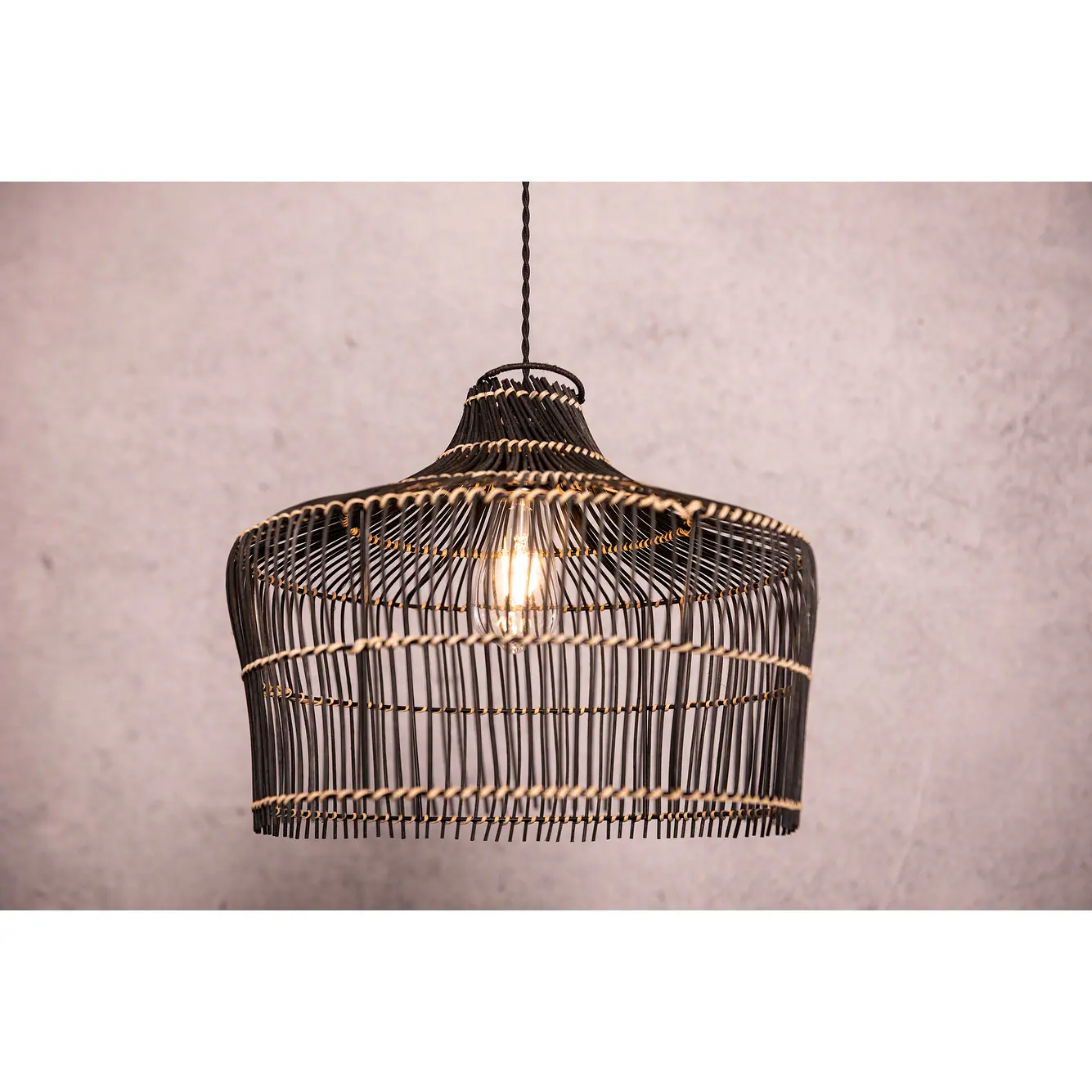 Rattan Boho Black Basket Pendant Ceiling Light