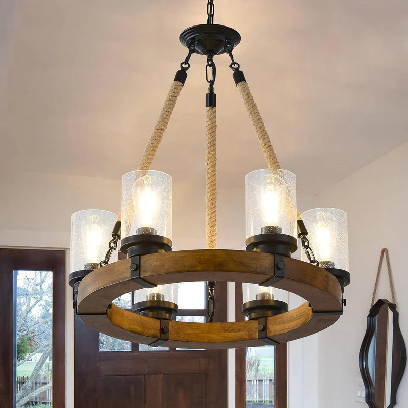 6 Lights Wagon Wheel Chandelier Rustic Wood Farmhouse Chandelier